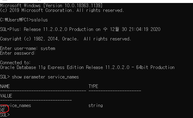 적용시킨 뒤에 Orcale service name도 확인해야 합니다.