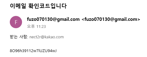 설정 완료한 후 웹에서 다시 이메일 발송을 요청