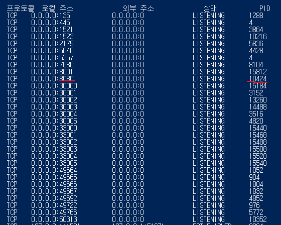 1. cmd 에서 netstat -aon을 입력