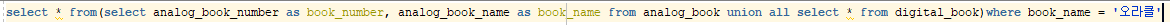 union all에 의해 2개의 테이블이 하나의 테이블처럼 보이게된다.
