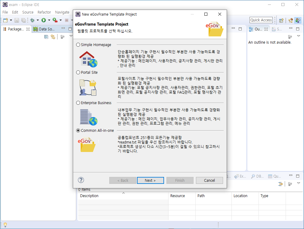 eGovFrame 선택