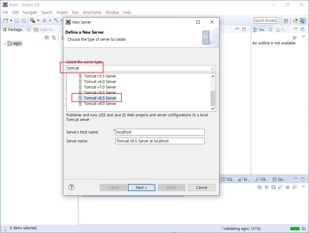 tomcat 검색 tomcat 8.5 Server 클릭 Next